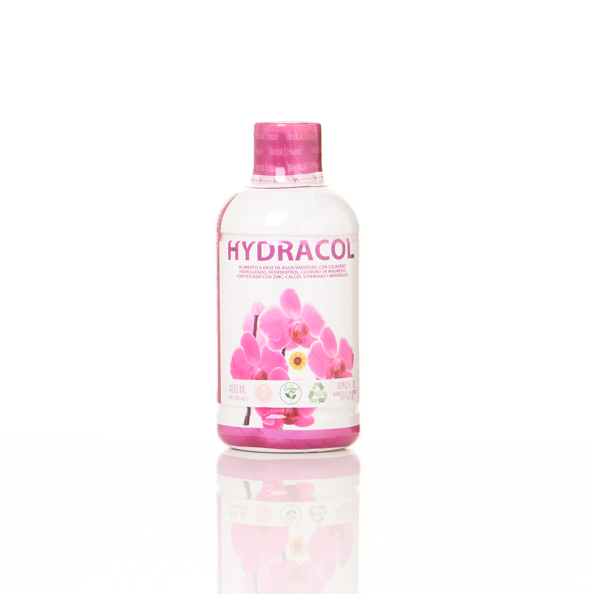 Eau de variété avec collagène hydrolysé, resvératrol, chlorure de magnésium, enrichie en zinc, calcium, vitamines et minéraux.
