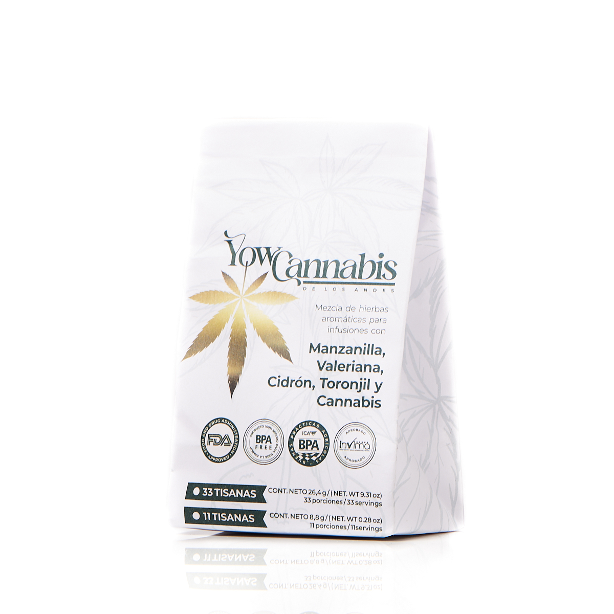 Hierbas aromaticas de canabbis, manzanilla,valeriana, cidron, toronjil, hierva un (1) pocillo de agua (tambien lo puede tomar en leche de origen vegetal o animal), vierta 1 tisana de cannabis de los andes y agrega miel al gusto, deja reposar la tisana 4 minutos y despues tomar.